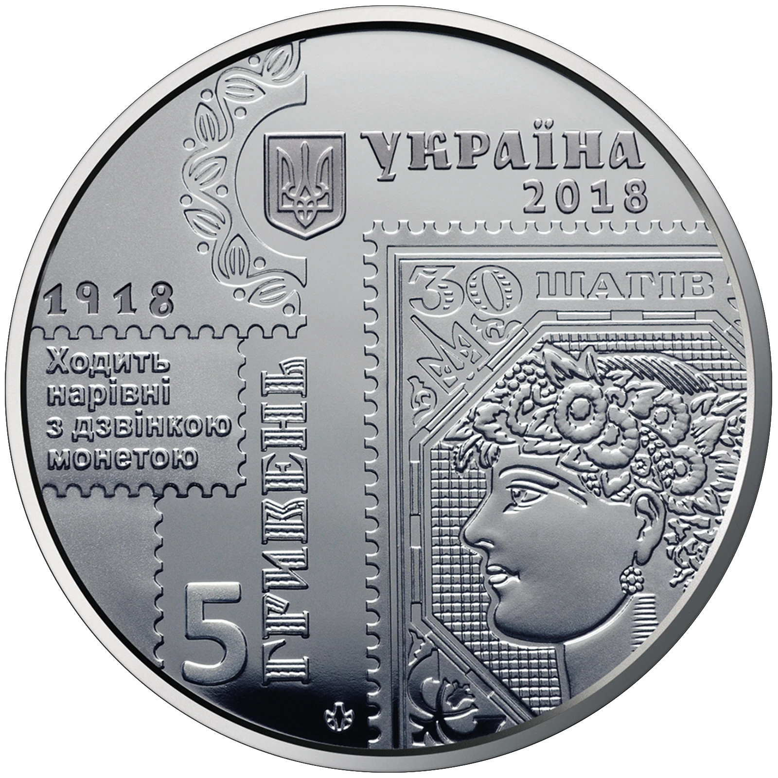 Продам пам'ятну монету 100-річчя випуску перших поштових марок України (нейзильбер), 2018 р.