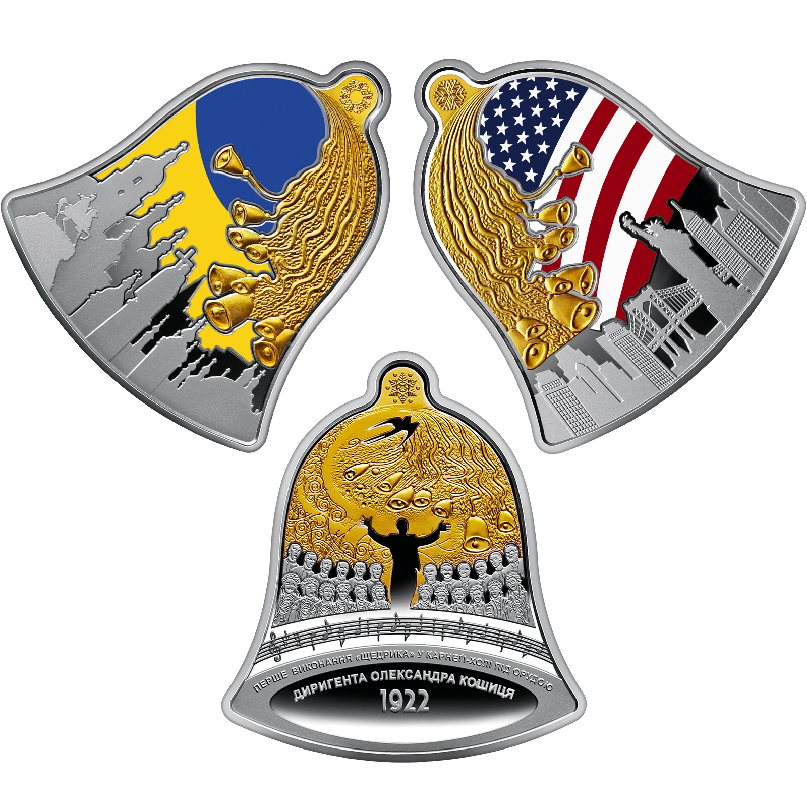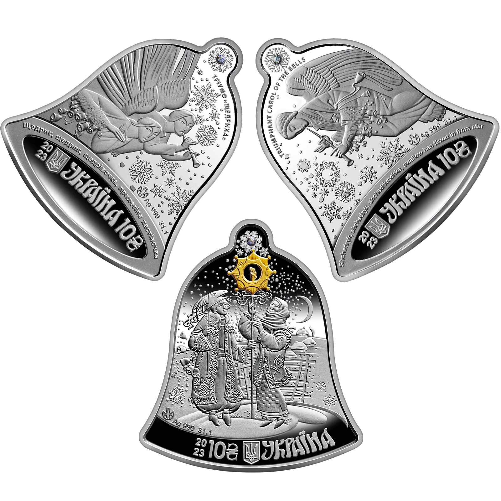 Продам пам'ятну монету Набір із трьох срібних монет “Щедрик – колядка дзвонів” у футлярі (срібло), 2023 р.