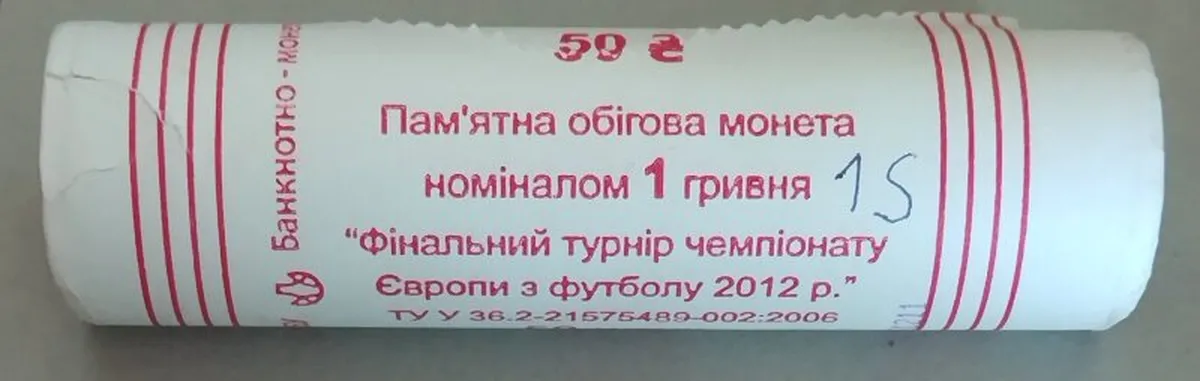 Продам ролл монет номинал 1 гривна Чемпионат по футболу ЕВРО 2012