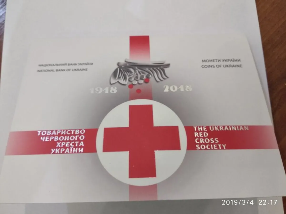 Продам монету 100 років утворення Товариства Червоного хреста України 2018 рік 5 гривень в сувенірній упаковці