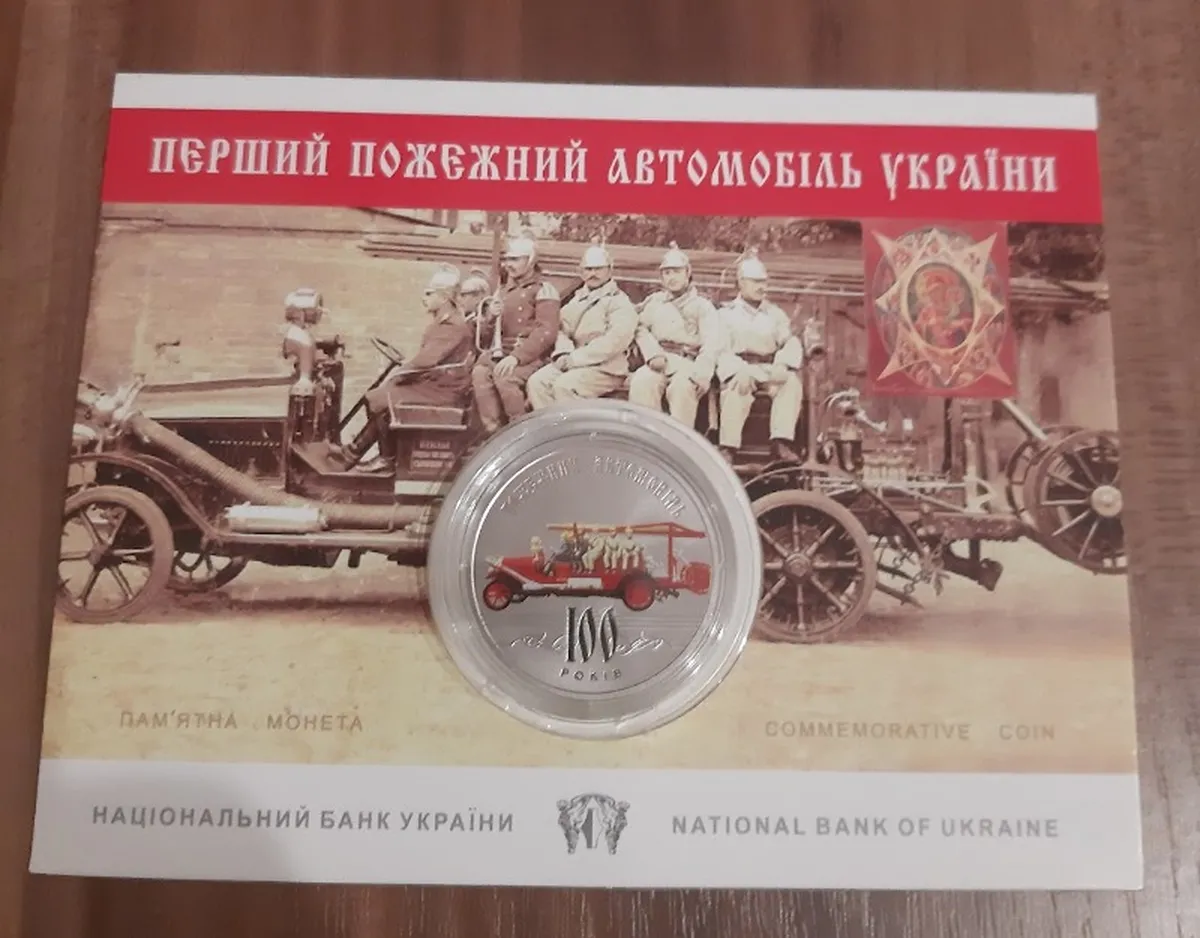 Продам пам'ятну монету 100 років пожежному автомобілю України у сувенірній упаковці (нейзильбер) , 2016 р.