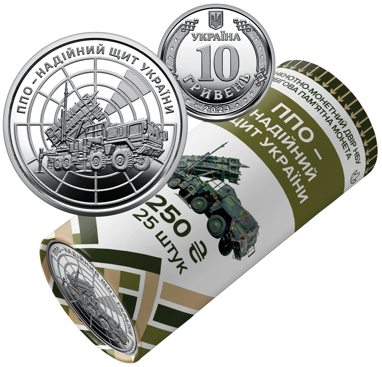 Продам памятную монету Ролик обиходных памятных монет `ПВО - надежный щит Украины` (в ролике 25 монет) (не вказується (набір))