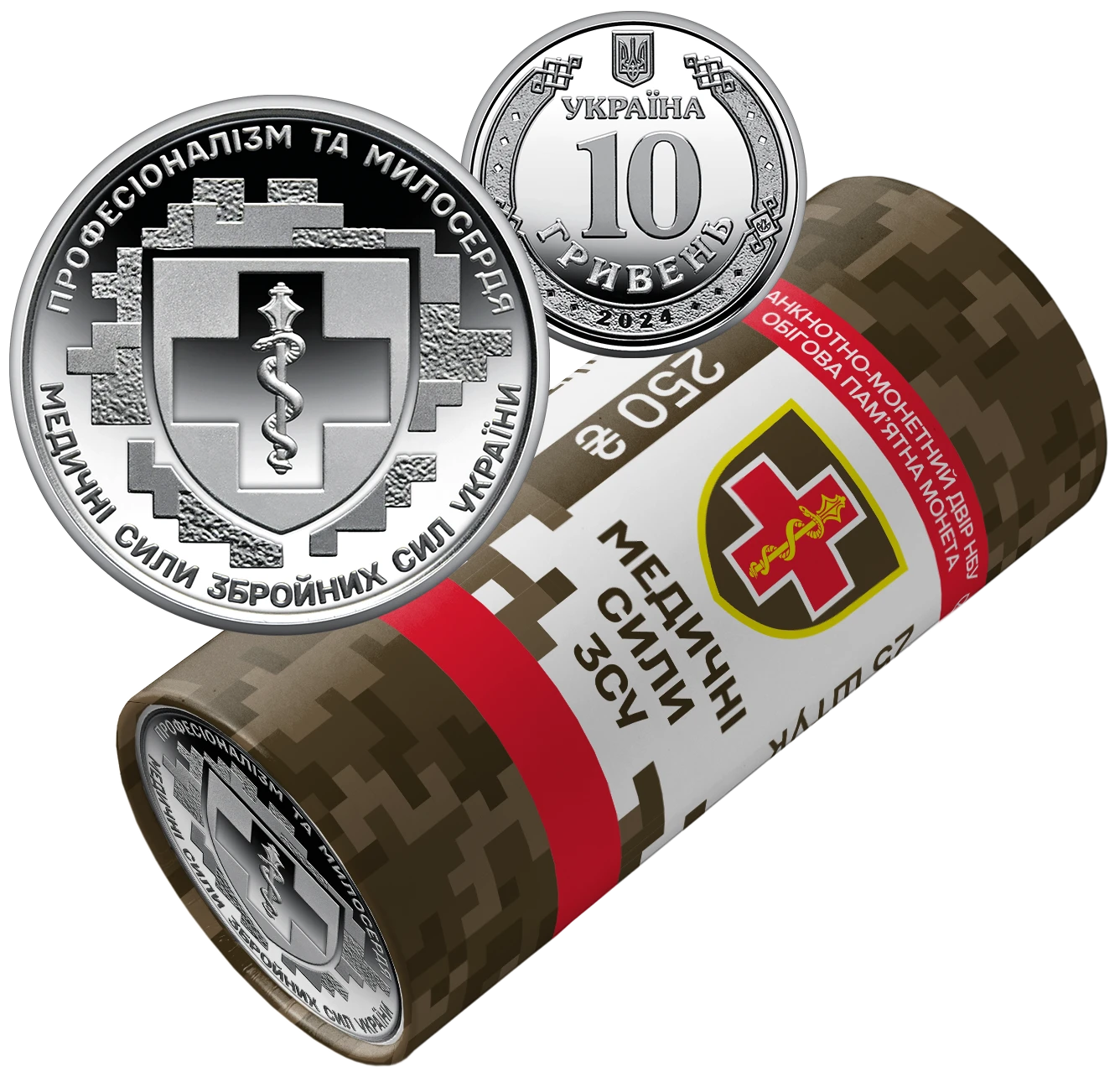 Продам памятную монету Ролл обиходных памятных монет «Медицинские силы Вооруженных Сил Украины» (в ролле 25 монет) (не вказується (набір))