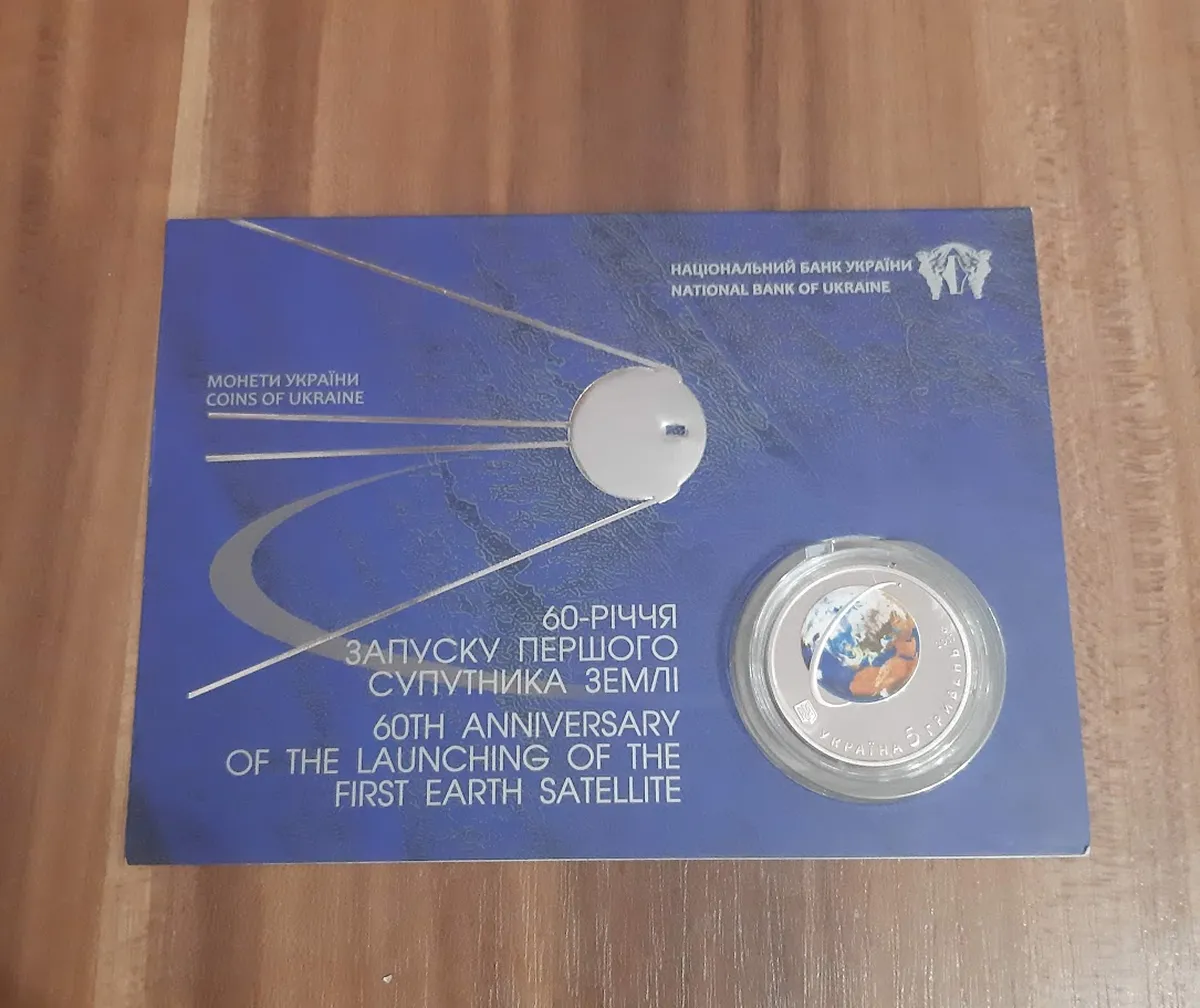 Продам памятную монету 60-летие запуска первого спутника Земли (нейзильбер) в сув. упаковке ( 2017 г.)