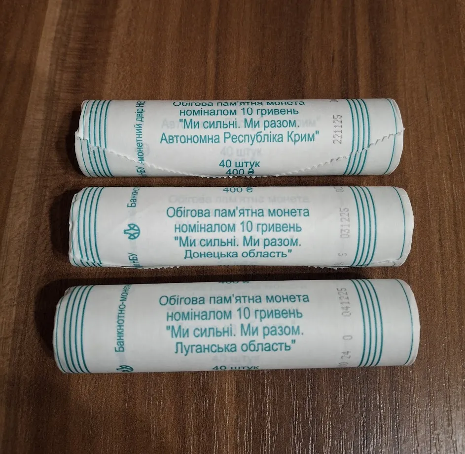Лот з 3-х Роликов обігових пам`ятних монет `Ми сильні. Ми разом. Автономна Республіка Крим , Донецька область, Луганська область` (у ролику 40 монет), 2025 р.