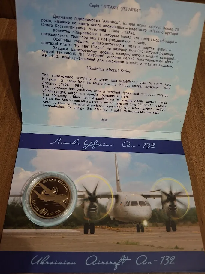 Продам пам'ятну монету Літак Ан-132 (нейзильбер), сув. паковання , 2018 р.