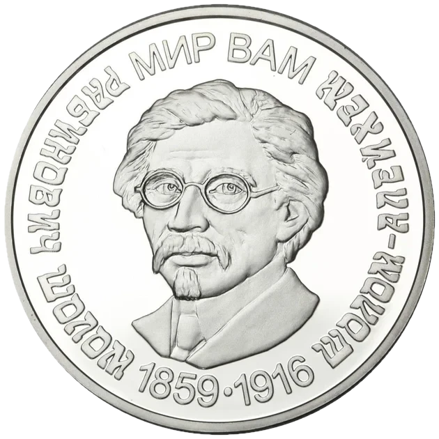 The Jubilee coin is dedicated to 150th anniversary of Sholem Aleichem, the world known author, playwright and educator, whose works combine humor and lyricism
