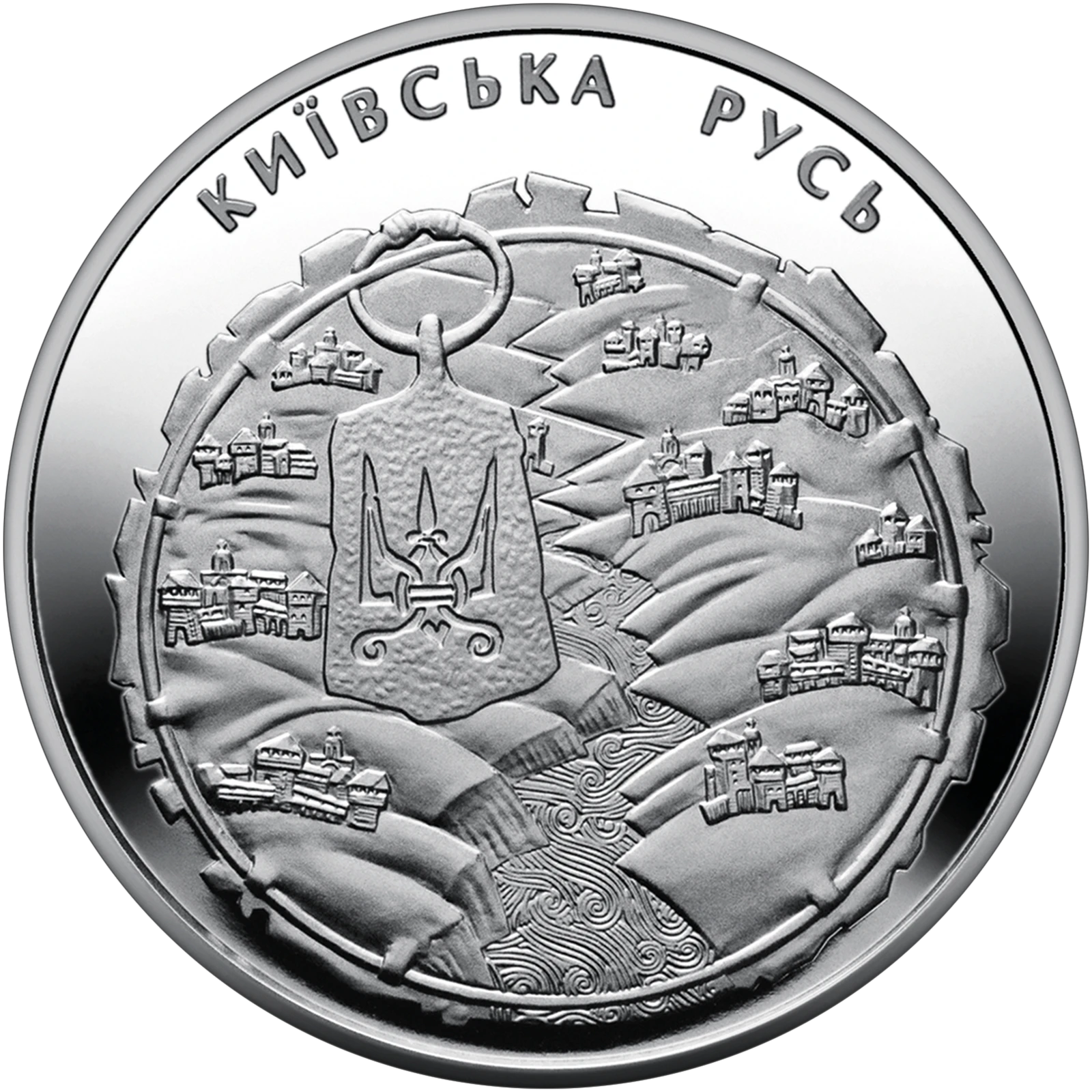 The Kyiv Rus coin is dedicated to the origins of the Ukrainian statehood - the medieval Kyiv state of the 9th - 13th centuries, which was founded on its own social, economic, and cultural basis and occupied a prominent place in the history of Europe.