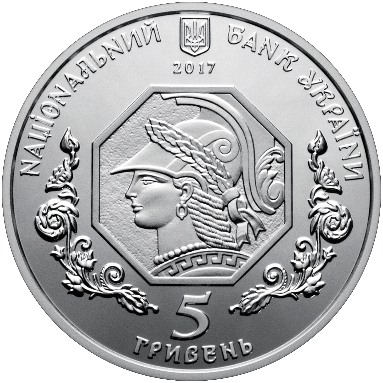 All coin sale ads on our websiteObverse: above is Ukraine`s small coat of arms, below which is the coin`s issue year - 2017; there is the semicircular conventionalized legend: NАЦІОНАЛЬНИЙ БАНК УКРАЇНИ (National Bank of Ukraine); in the center against a smooth background is an octagon fringed with a floral ornament, in the octagon is an image of the goddess Minerva - the Roman patron of the fine arts; beneath is the coin`s face value: on the silver coin - 5/ ГРИВЕНЬ (5/ hryvnias).