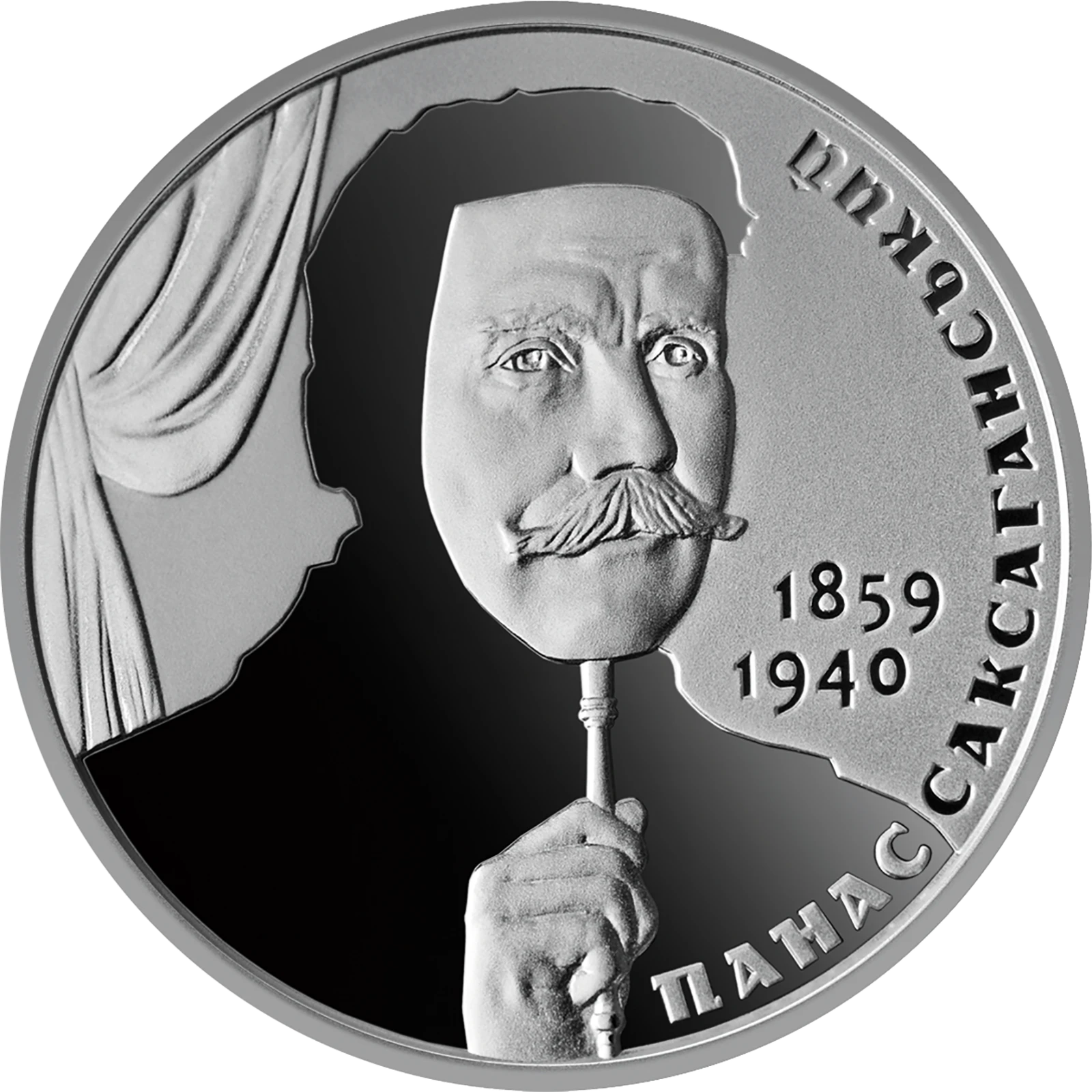 The commemorative coin is dedicated to Panas Saksahanskyi (Tobilevych), the famous Ukrainian actor, stage director, playwright, teacher, and one of the great figures of Ukrainian popular theater. Over his career, Panas Saksahanskyi created a whole range of comic and dramatic characters that became classic examples of acting technique and skill. These are the characters of Kopach (One Hundred by I. Karpenko-Karyi), Holokhvostyi (Chasing Two Hares by M. Starytskyi), Karas (Cossack Beyond the Danube by S. Hulak-Artemovskyi), Voznyi and Vybornyi (Natalka Poltavka by I. Kotliarevskyi), and many more. Panas Saksahanskyi is famous not only as an actor but also as a gifted stage director, who invented the system of preparing for a role. He is the author of comedies Hypocrites (1908) and Shantrapa (1913).