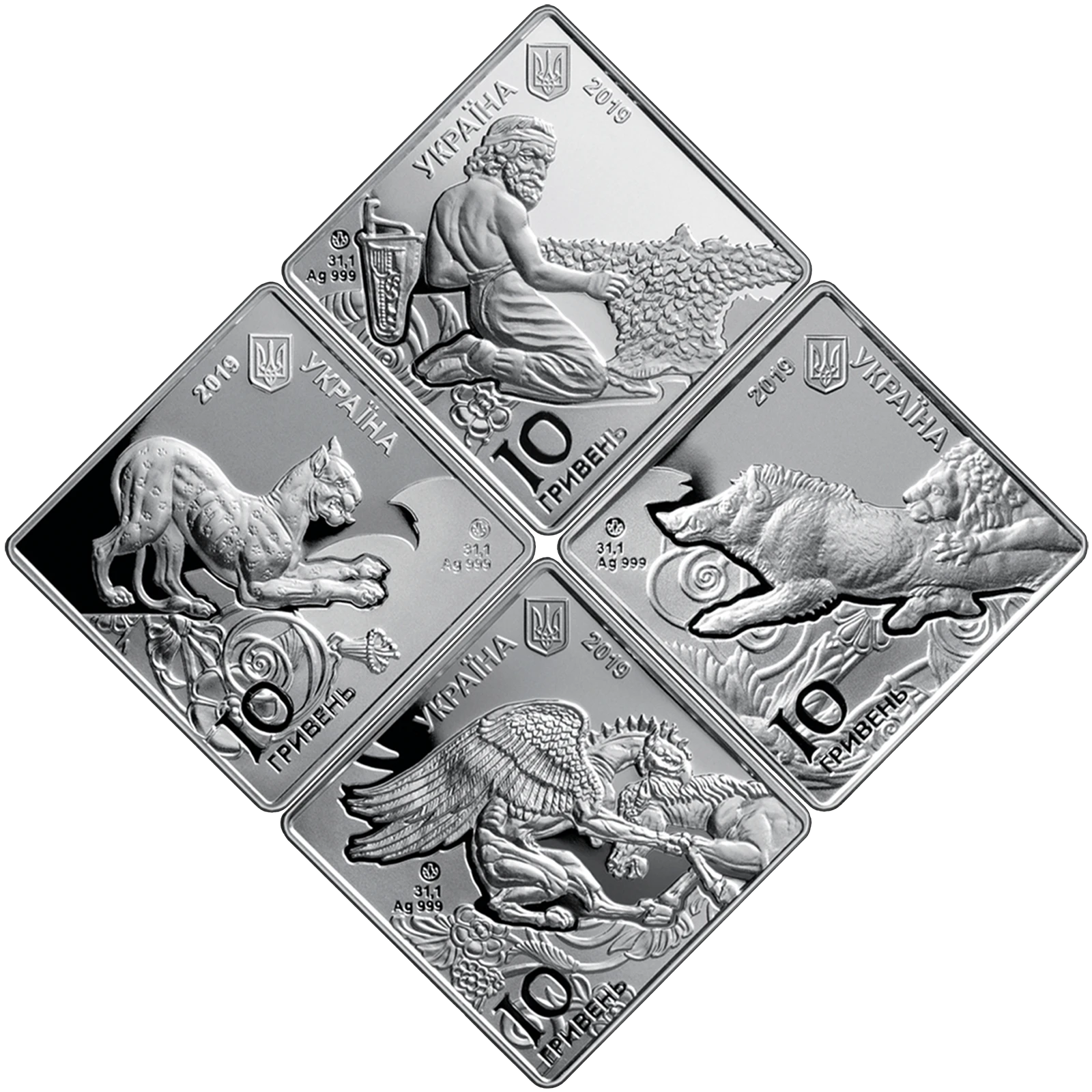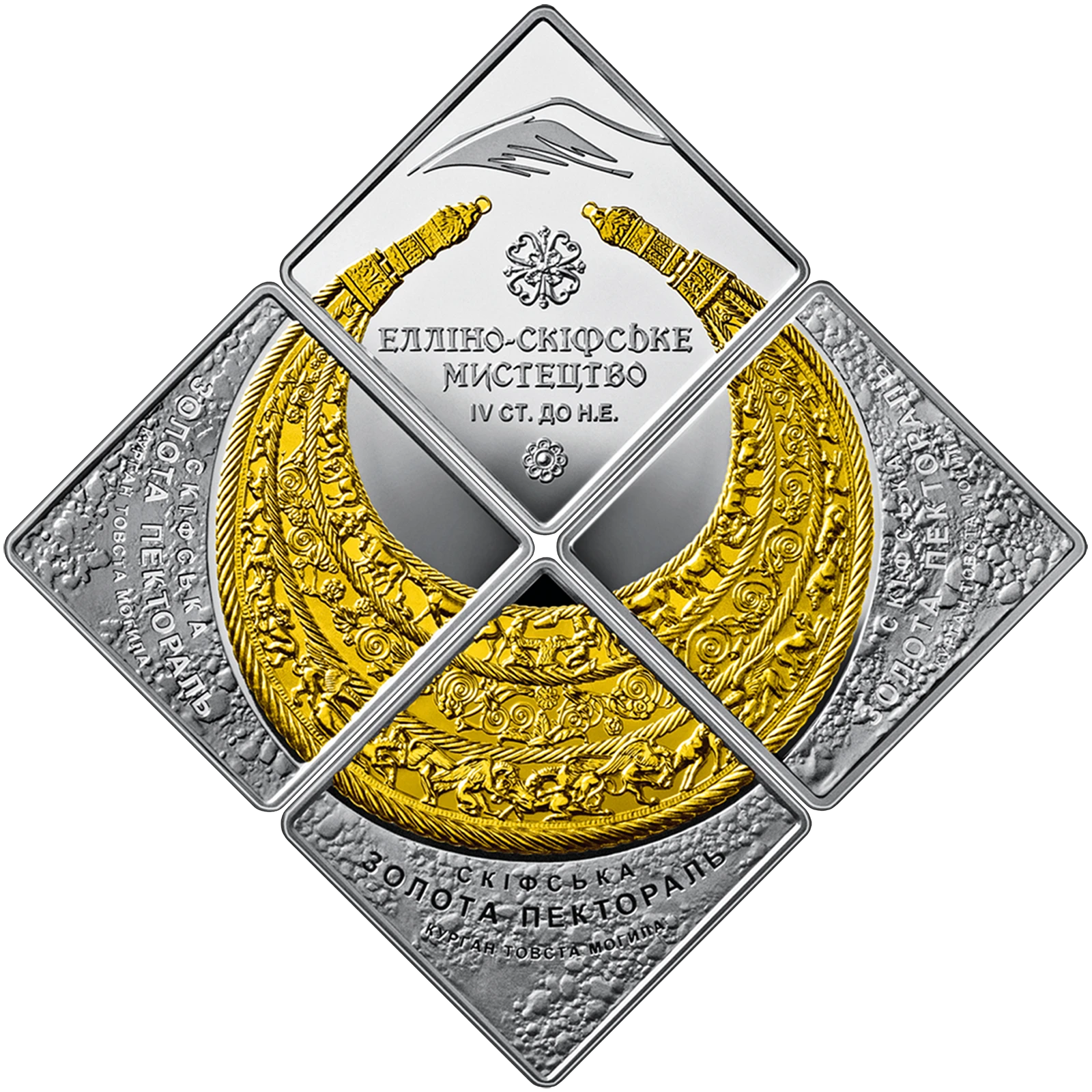 Four commemorative coins included in the Pectoral Set celebrate a golden breast decoration, a pectoral that belonged to a Scythian king. This ancient and unique piece of jewelry, which dates back to the 4th century B.C., depicts unusual scenes from Scythian life and mythology, and is of superb artistry. The pectoral resembles a crescent in shape and consists of three tiers: the lower tier features animals, the middle one depicts flowers, and the upper one shows people. To this day, the pectoral’s intricate details have not ceased to astound and impress people: every muscle, fiber, and fold in clothing has been carved with great precision. Discovered in 1971 in a Scythian burial mound called the Thick Tomb in Dnipropetrovsk oblast by Ukrainian archeologist Borys Mozolevskyi, the pectoral has become a symbol of Ukraine’s elite heritage, and has international significance.
