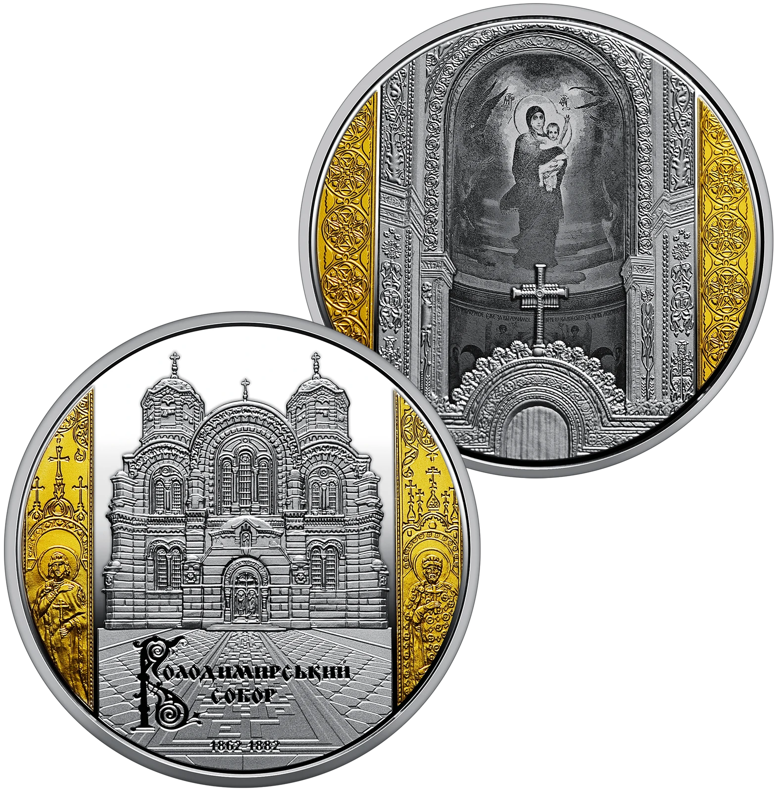 The set of two commemorative coins is dedicated to one of Kyiv's architectural pearls of national importance - Volodymyr's Cathedral. Built in the neo-Byzantine style, it attracts attention both with its history and interior painting - a true masterpiece of art. A significant number of donations were collected for the construction of the cathedral, which lasted 20 years - from 1862 to 1882. For more than 10 years, work continued on the interior decoration of the temple, unique paintings are its main value, thanks to which the cathedral received the status of a cultural monument. On the walls of the temple are depicted not only the images of saints, but also historical subjects: the baptism of Prince Volodymyr, the baptism of Kyivans, as well as portraits of historical figures.