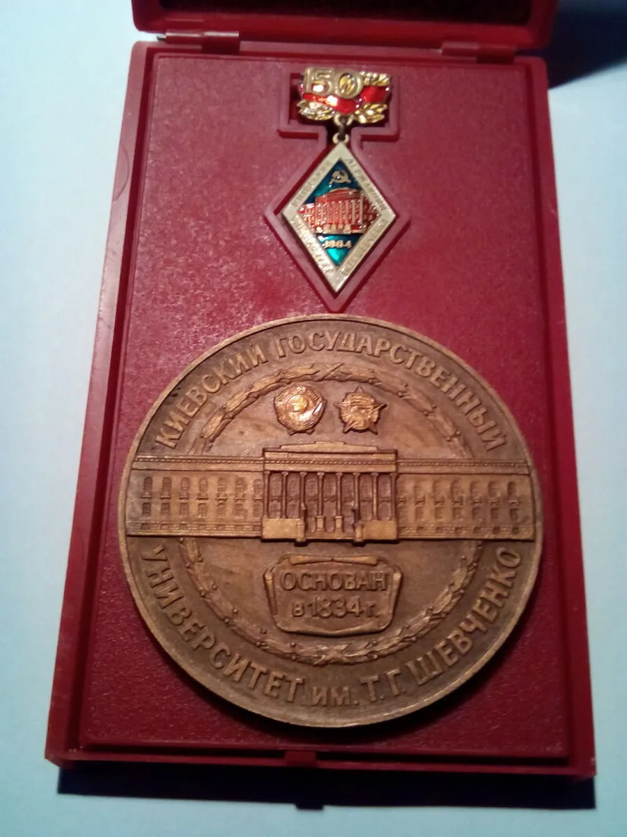 Медаль со значком 150 лет Киевскому университету им.Т.Г.Шевченко,1984