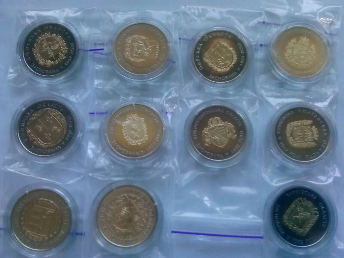 набір монет біметал 5 грн Області 85 років Дніпропетровській області, Київській області, Полтавській область Київ