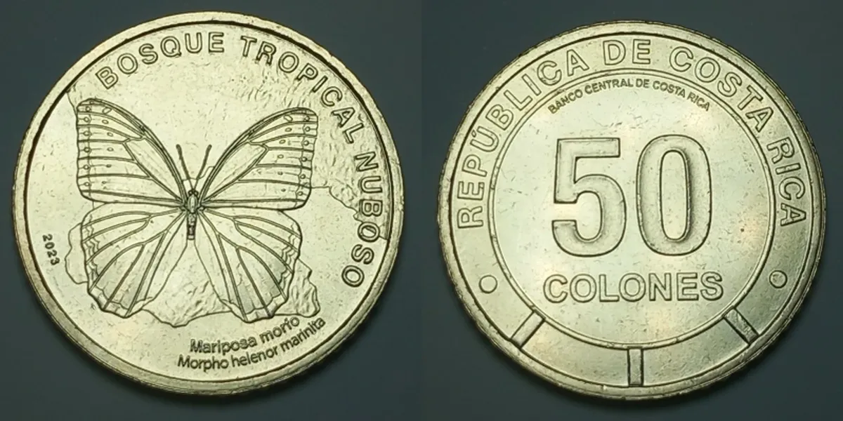 Продам пам'ятну монету Коста-Ріки 50 колонів, 2023 р. "Фауна екосистем - Тропічний хмарний ліс. Метелик". Чудова нова монета із банківського мішка.