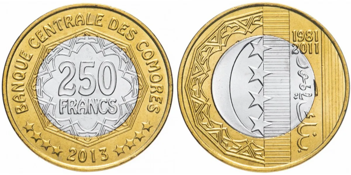 Продам ювілейну монету Коморських островів 250 франків, 2013 р. "30 років Центральному банку"