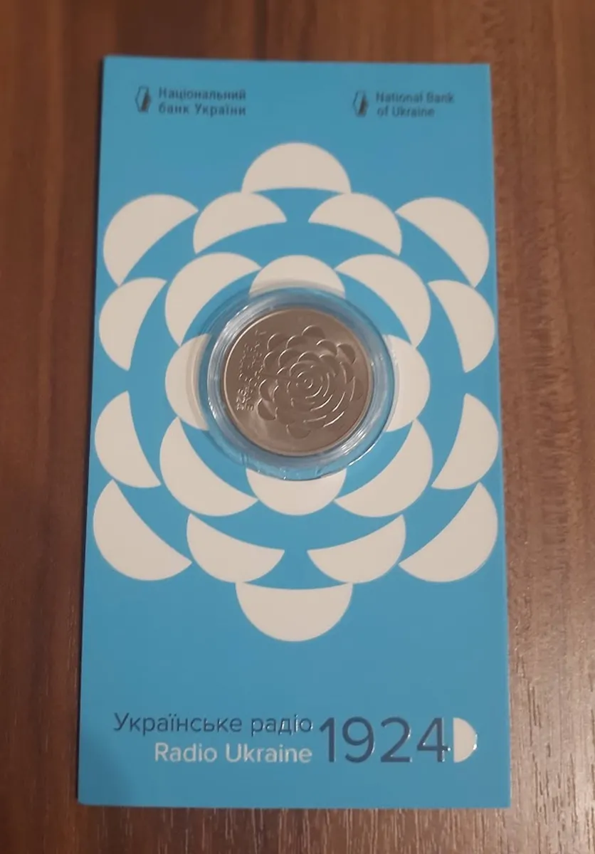 Продам пам'ятну монету 100 років із часу заснування `Українського Радіо`у сувенірному пакованні (нейзильбер), 2024 р.