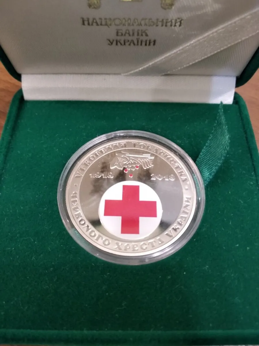 Продам монету 100 років утворення Товариства Червоного Хреста України в замшевому футлярі