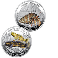 Набір із двох пам’ятних монет присвячений унікальним представникам морської фауни Чорного та Азовського морів – невід’ємній складовій природної спадщини України. Чорне та Азовське моря відіграють важливу роль у збереженні біорізноманіття регіону, підтриманні екологічної рівноваги та забезпеченні економічної стабільності держави. Серед багатьох мешканців цих водойм – рак-самітник (Diogenes pugilator) і бичок-кругляк (Neogobius melanostomus) – види, що слугують біоіндикаторами стану морського середовища та є важливими елементами морських екосистем. Цим набором з двох пам’ятних монет Національний банк України має на меті привернути увагу до проблеми збереження морів, нагадати про відповідальність людства за охорону природних ресурсів і підкреслити значення морської біоти у формуванні екосистеми України.