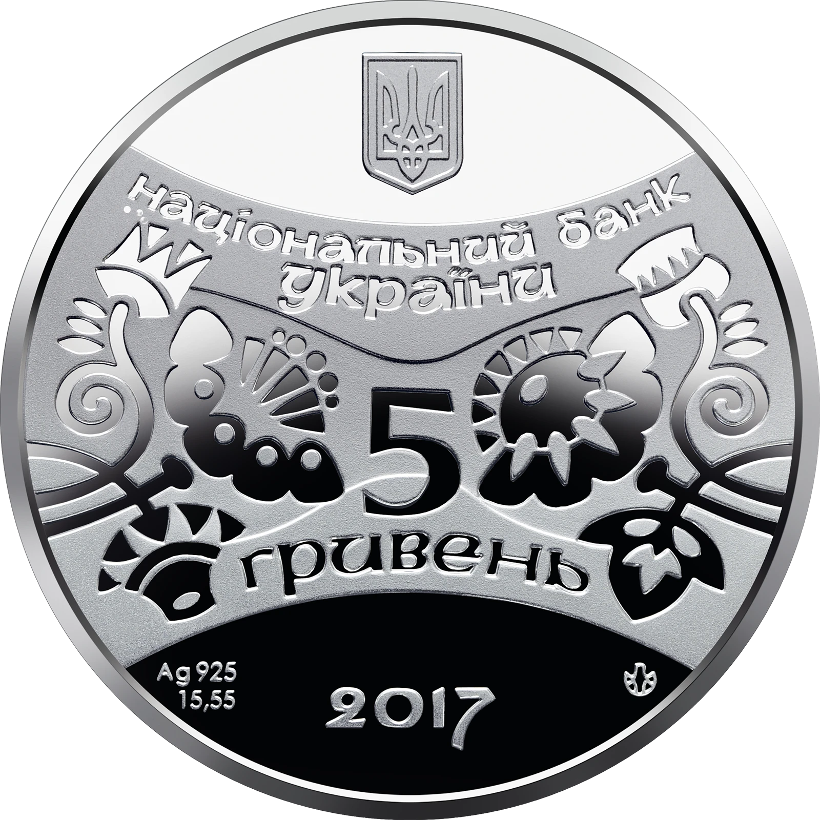 На аверсі монети розміщено: угорі малий Державний Герб України, під яким напис НАЦІОНАЛЬНИЙ БАНК/УКРАЇНИ; у центрі в оточенні стилізованого рослинного орнаменту - номінал 5/ГРИВЕНЬ; унизу рік - 2017, а також позначення металу, його проби - Ag 925, маси в чистоті - 15,55 та логотип Банкнотно-монетного двору Національного банку України.