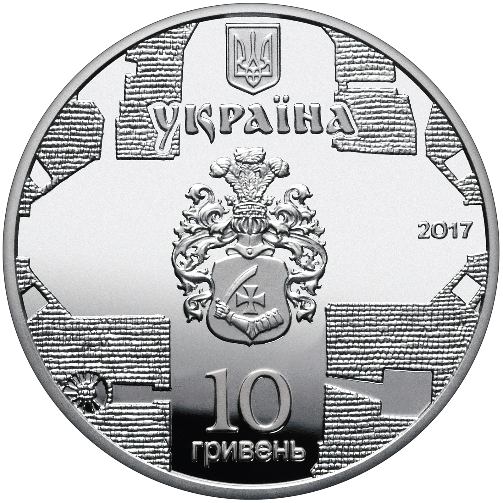 Всі оголошення про продаж монети на нашому сайтіНа аверсі монети розміщено: угорі - малий Державний Герб України, під яким напис УКРАЇНА; у центрі на тлі дзеркального хрестоподібного плану Катерининської церкви - герб Лизогубів; рік карбування монети 2017 (праворуч); унизу напис - 10/ГРИВЕНЬ.