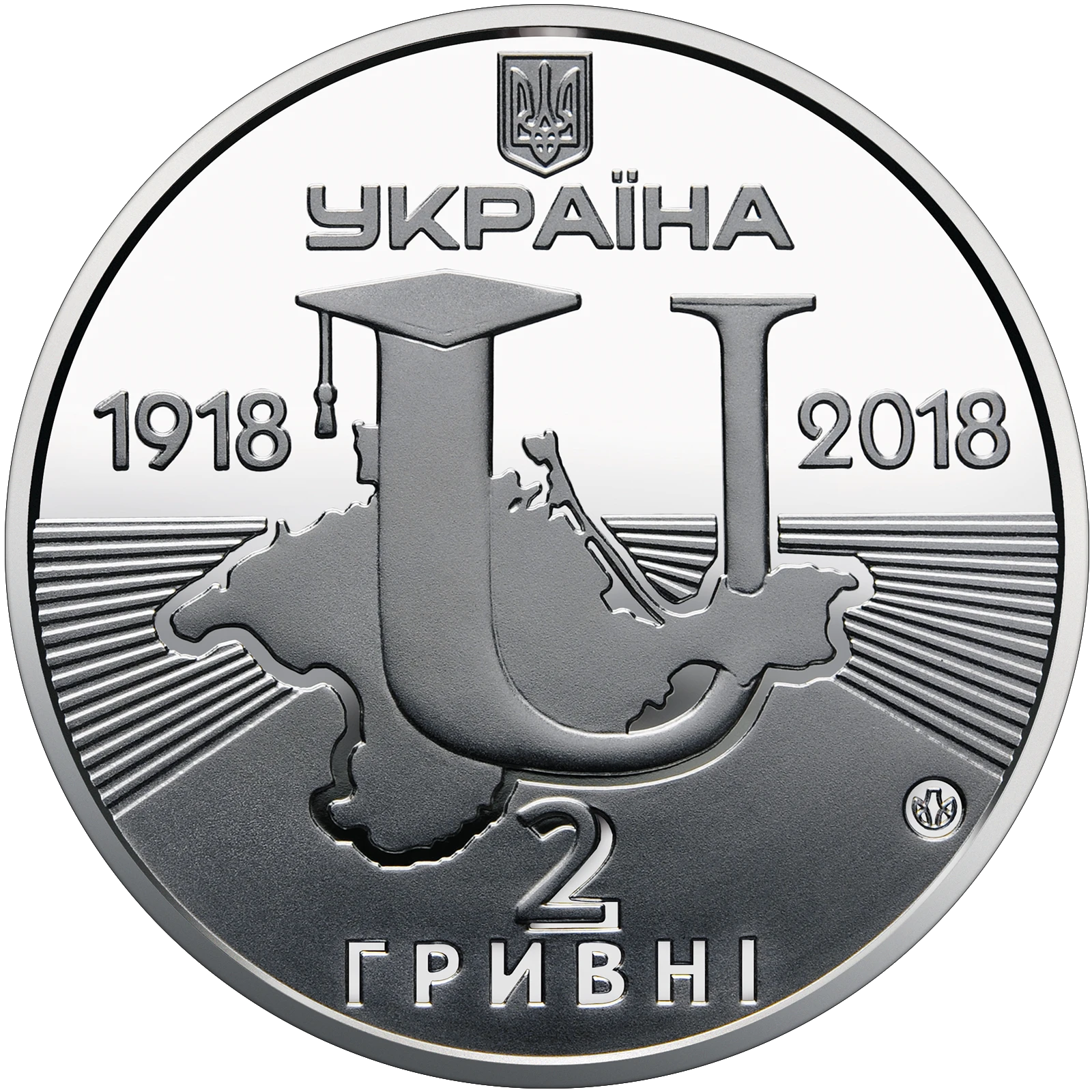 Всі оголошення про продаж монети на нашому сайтіНа аверсі монети розміщено: угорі - малий Державний Герб України, під яким напис УКРАЇНА; у центрі - логотип Таврійського національного університету ім. В. І. Вернадського по обидва боки від якого роки: 1918 та 2018; унизу номінал 2/ГРИВНІ та логотип Банкнотно-монетного двору Національного банку України (праворуч).