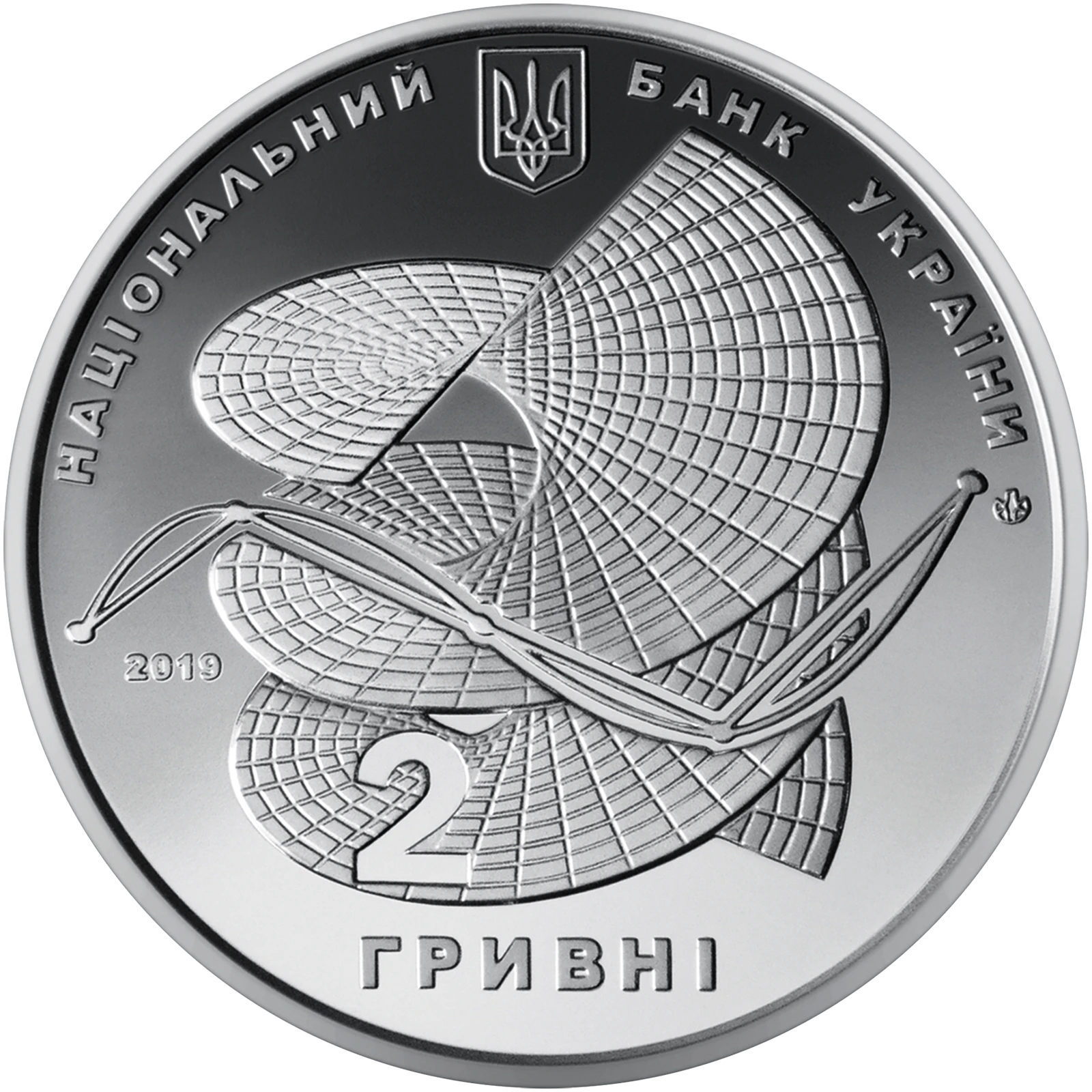 Всі оголошення про продаж монети на нашому сайтіНа аверсі монети розміщено: угорі – малий Державний Герб України, по обидва боки від якого написи: НАЦІОНАЛЬНИЙ (ліворуч), БАНК УКРАЇНИ (праворуч); у центрі на дзеркальному тлі – стилізовану композицію: зображено гелікоїд (гвинтова поверхня), на тлі якого – полігональне наближення кривої та номінал – 2, унизу напис – ГРИВНІ; рік карбування монети – 2019 (ліворуч), логотип Банкнотно-монетного двору Національного банку України (праворуч).