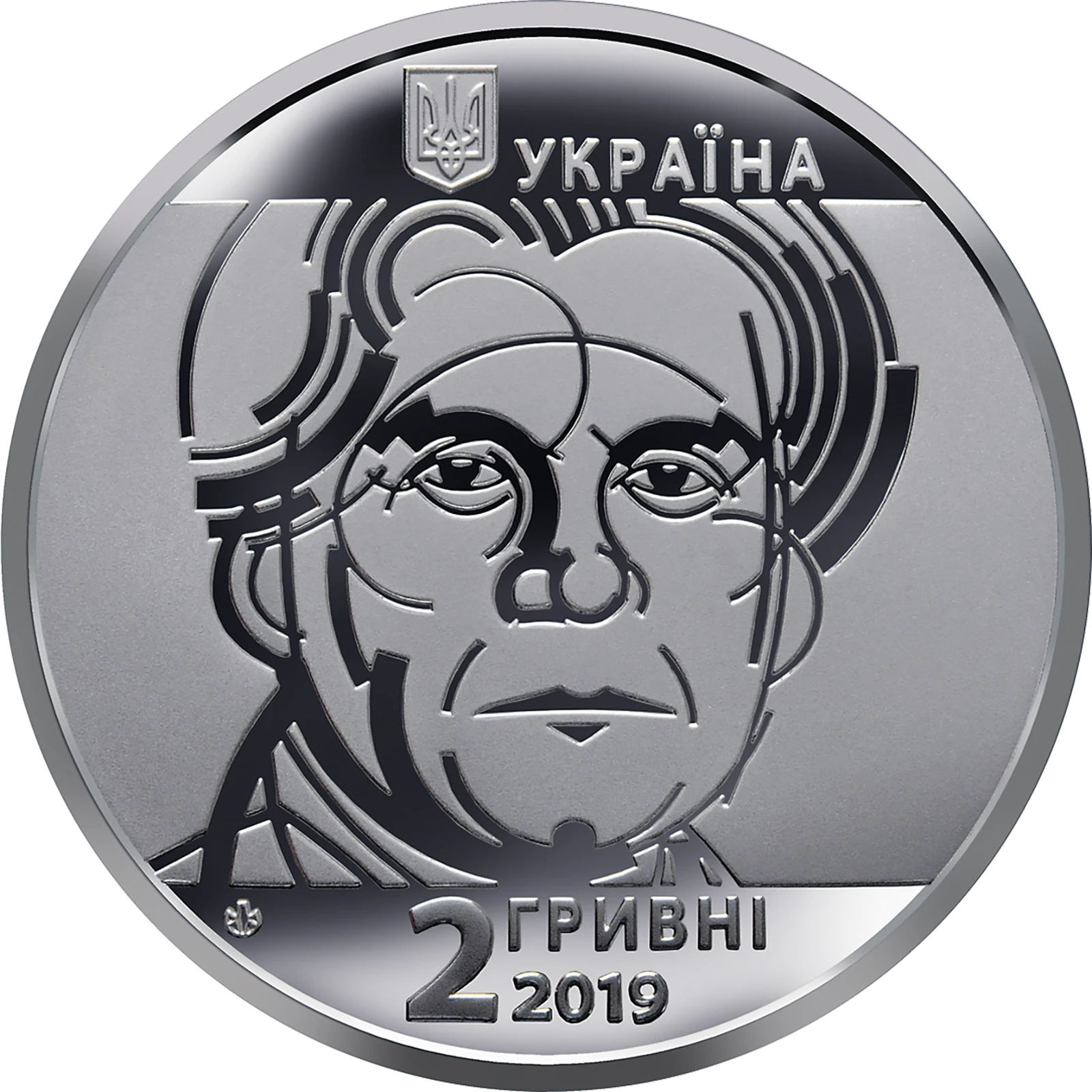 На аверсі монети розміщено: угорі на дзеркальному тлі – малий Державний Герб України, праворуч від якого – напис УКРАЇНА, на матовому тлі – стилізований портрет Казимира Малевича, унизу написи – 2 ГРИВНІ/2019; ліворуч під портретом логотип Банкнотно-монетного двору Національного банку України.