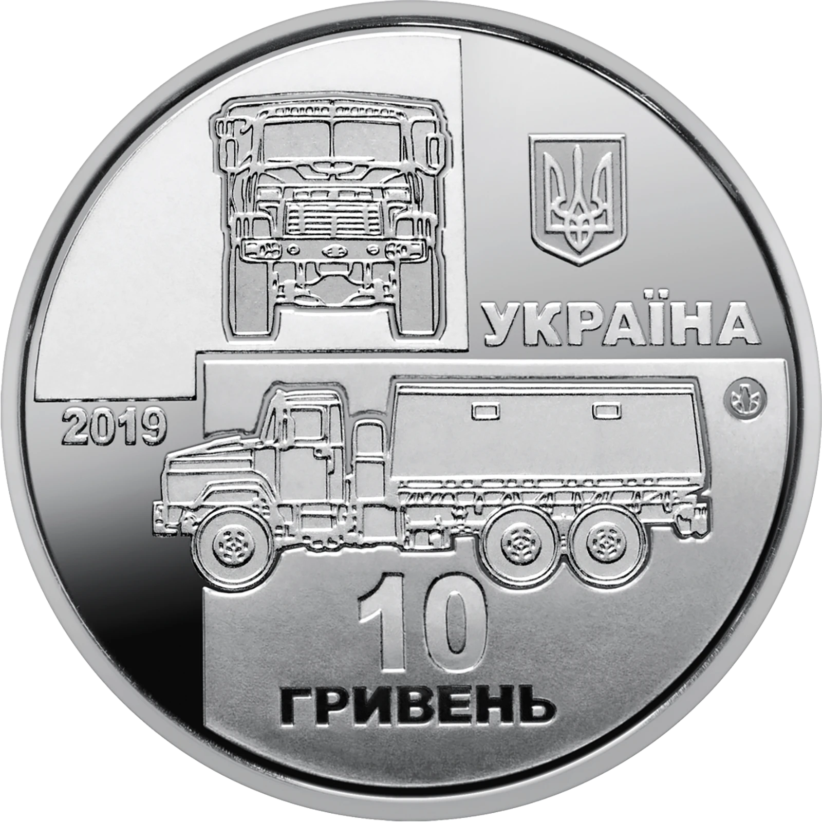 Всі оголошення про продаж монети на нашому сайтіНа аверсі монети розміщено: малий Державний Герб України (праворуч на дзеркальному тлі), під яким напис УКРАЇНА; на матовому тлі – стилізоване креслення автомобіля в двох ракурсах; зазначено номінал 10/ГРИВЕНЬ (унизу); рік карбування монети 2019 (ліворуч на дзеркальному тлі); логотип Банкнотно-монетного двору Національного банку України (праворуч).