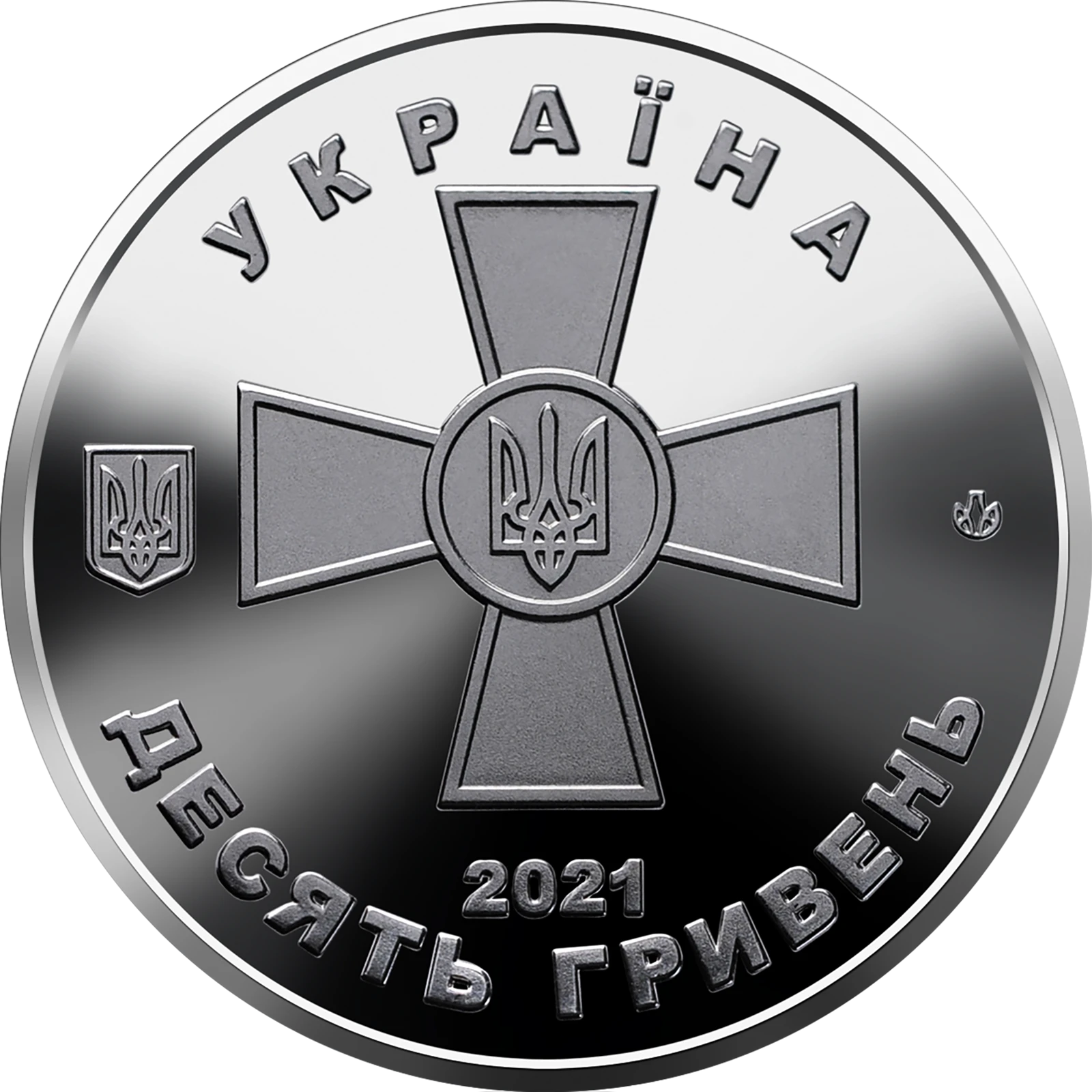 Всі оголошення про продаж монети на нашому сайтіНа аверсі монети розміщено: угорі – напис УКРАЇНА (півколом), у центрі на дзеркальному тлі – емблема Збройних Сил України, ліворуч від якої – малий Державний Герб України; під емблемою: рік карбування монети – 2021 та номінал – ДЕСЯТЬ ГРИВЕНЬ (півколом); логотип Банкнотно-монетного двору Національного банку України (праворуч від емблеми ЗСУ).