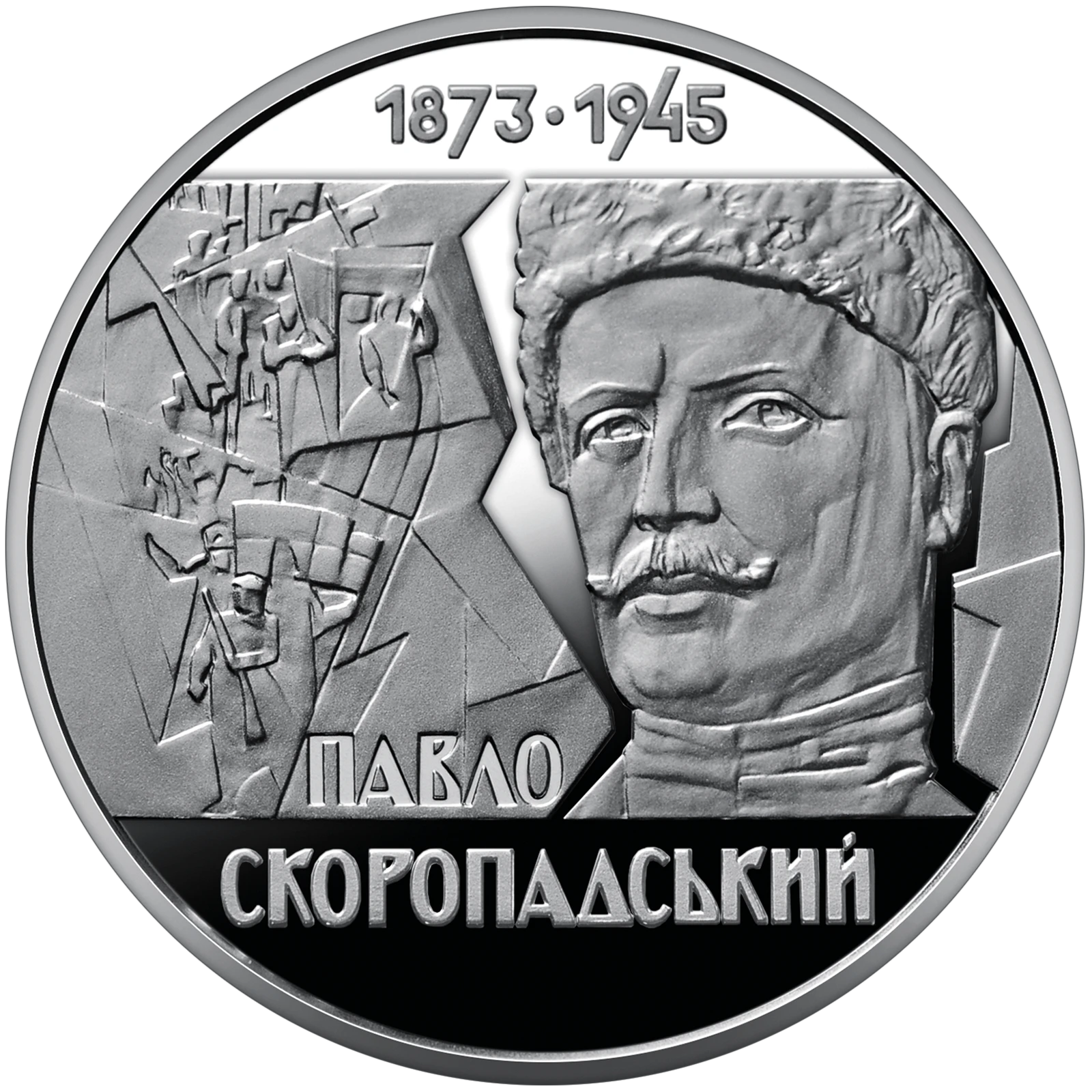 Всі оголошення про продаж монети на нашому сайтіПрисвячена 150-річчю від дня народження українського державного і політичного діяча, воєначальника, гетьмана України (1918). Нащадок давнього козацького роду Павло Скоропадський після приходу до влади приділяв велику увагу вирішенню економічно-фінансових проблем держави, запровадив земельні реформи, розбудовував збройні сили Української Держави, також значними були досягнення у сфері національно-культурної політики – він сприяв створенню в Україні цілої низки національно-державних наукових і культурно-освітніх інституцій. Менше ніж за вісім місяців уряду Павла Скоропадського вдалося створити національну економіку та фінанси. У “Грамоті до всього українського народу” від 29 квітня 1918 року було проголошено, що права приватної власності – як фундаменту культури і цивілізації, відбудовуються в повній мірі.