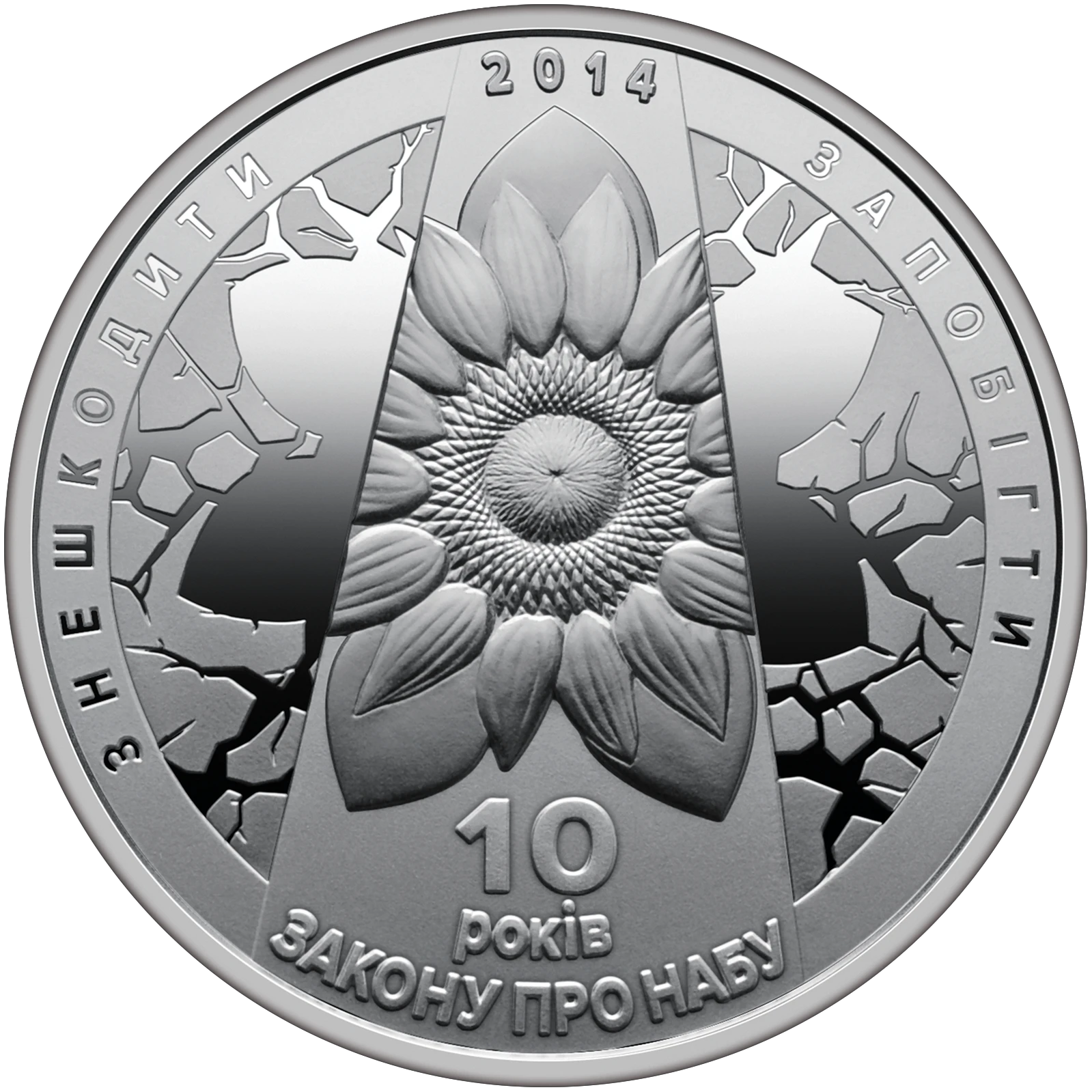 Пам’ятна медаль присвячена десятиріччю ухвалення Закону України “Про Національне антикорупційне бюро України”. НАБУ – центральний орган виконавчої влади зі спеціальним статусом, створений для попередження, виявлення, припинення, розслідування та розкриття корупційних правопорушень, що становлять загрозу національній безпеці. З часу заснування ця інституція викрила численні випадки хабарництва, розкрадання державного майна та незаконного збагачення серед високопосадовців. Пам’ятна медаль символізує досягнення НАБУ в боротьбі з топкорупцією, а також внесок цього правоохоронного органу в розбудову майбутнього України як частини європейської спільноти.