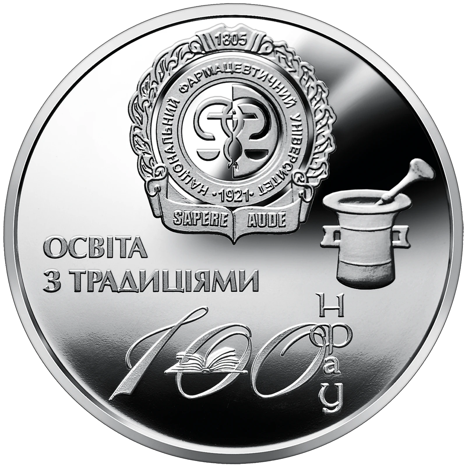 Пам’ятна медаль присвячена єдиному в Україні освітньому закладу фармацевтичного спрямування, створеному у 1921 році. Сучасними пріоритетними напрямами діяльності Національного фармацевтичного університету (НФаУ) є підготовка висококваліфікованих фахівців, забезпечення досліджень для наукоємного фармацевтичного сектору, зміцнення взаємозв’язку з практичною системою охорони здоров’я, активна інтеграція зі світовим освітянським, науковим, культурним та інформаційним простором.