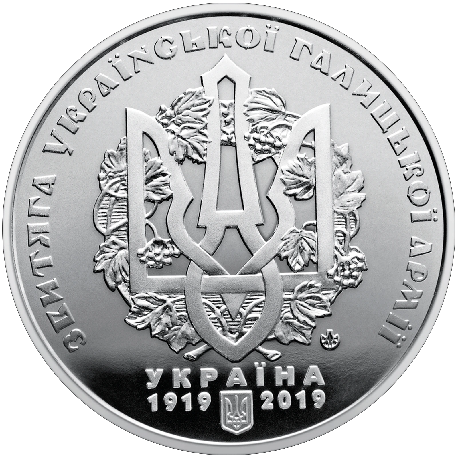 Поки що немає жодного оголошення. Виставити на продажНа аверсі медалі розміщено: напис УКРАЇНА (унизу), під яким малий Державний Герб України, праворуч і ліворуч від якого роки – 1919 і 2019; у центрі зображено Тризуб, оповитий гілками калини (з дизайну ордена Української Галицької Армії автора Михайла Бринського); по колу стилізований напис – ЗВИТЯГА УКРАЇНСЬКОЇ ГАЛИЦЬКОЇ АРМІЇ; праворуч від тризуба – логотип Банкнотно-монетного двору Національного банку України.