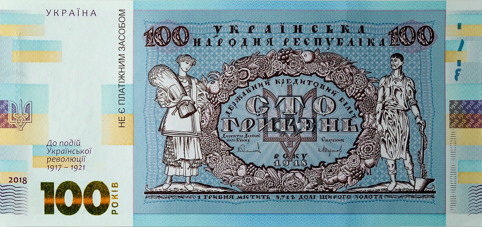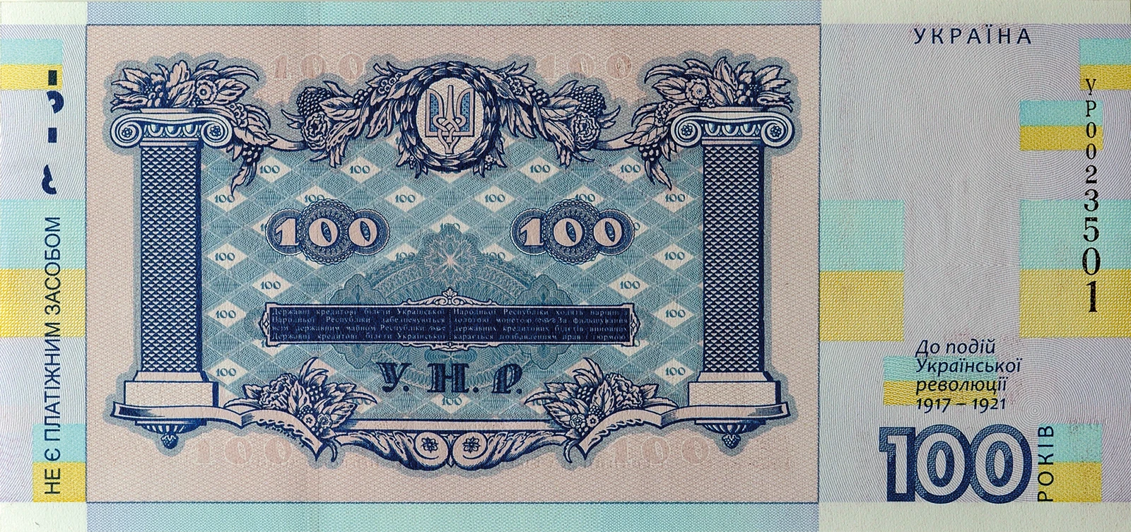 Cувенірна банкнота `Сто гривень` (до 100-річчя подій Української революції 1917 - 1921 років) 0 грн., ціна на ринку 28.01.2026
