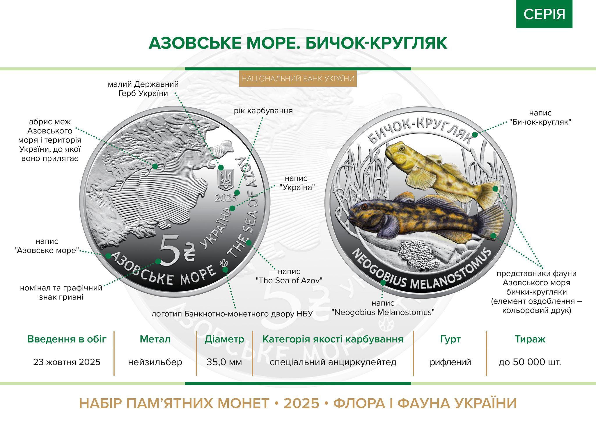 Монета Бичок-кругляк (Neogobius melanostomus) 5 грн., ціна на ринку 22.02.2026