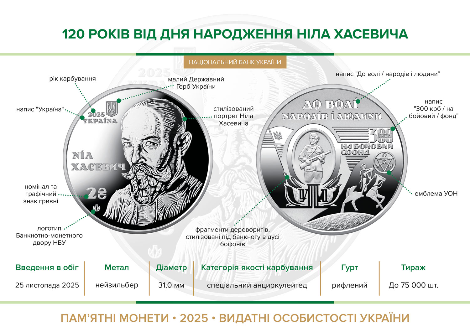 Пам’ятна монета присвячена легендарній постаті українського підпілля, видатному художнику-графіку, учаснику національно-визвольного руху, який перетворив мистецтво на потужну зброю опору.