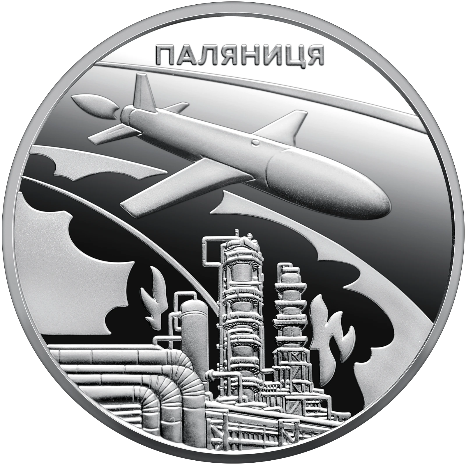 Пам’ятна монета присвячена першій вітчизняній далекобійній системі озброєння з турбореактивним двигуном, що призначена для високоточних ударів Збройних Сил України по стратегічних об’єктах у глибокому тилу противника.